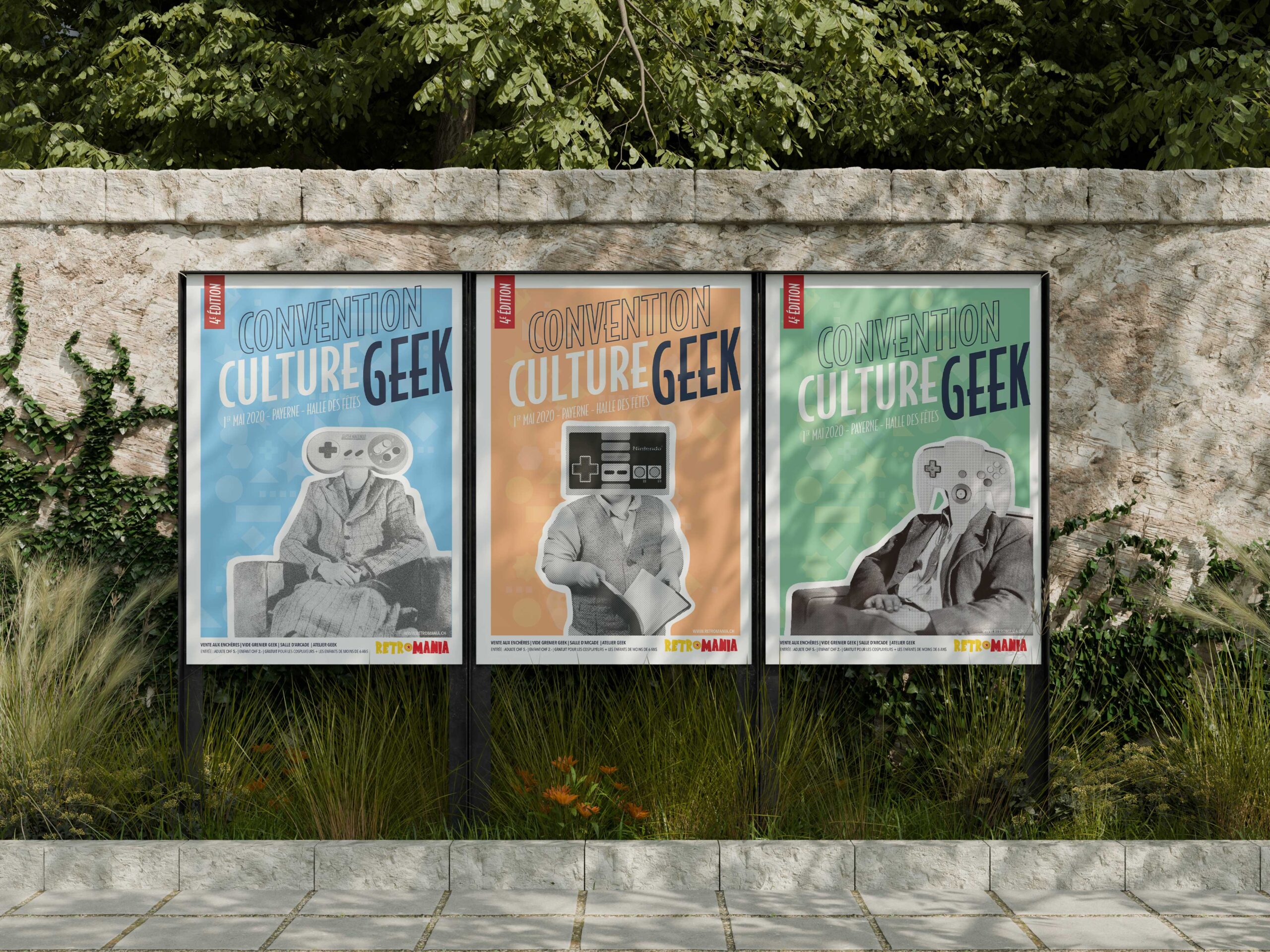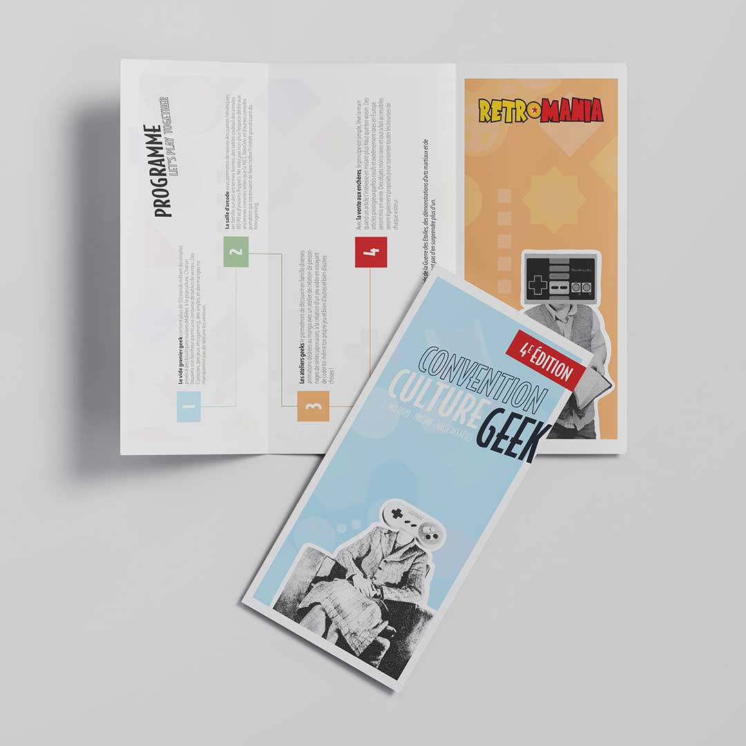 Un de mes projets préférés, réalisé durant mon CFC de médiamaticienne, j’ai créé l’univers graphique de la 4ᵉ édition d’une convention dédiée à la culture geek.